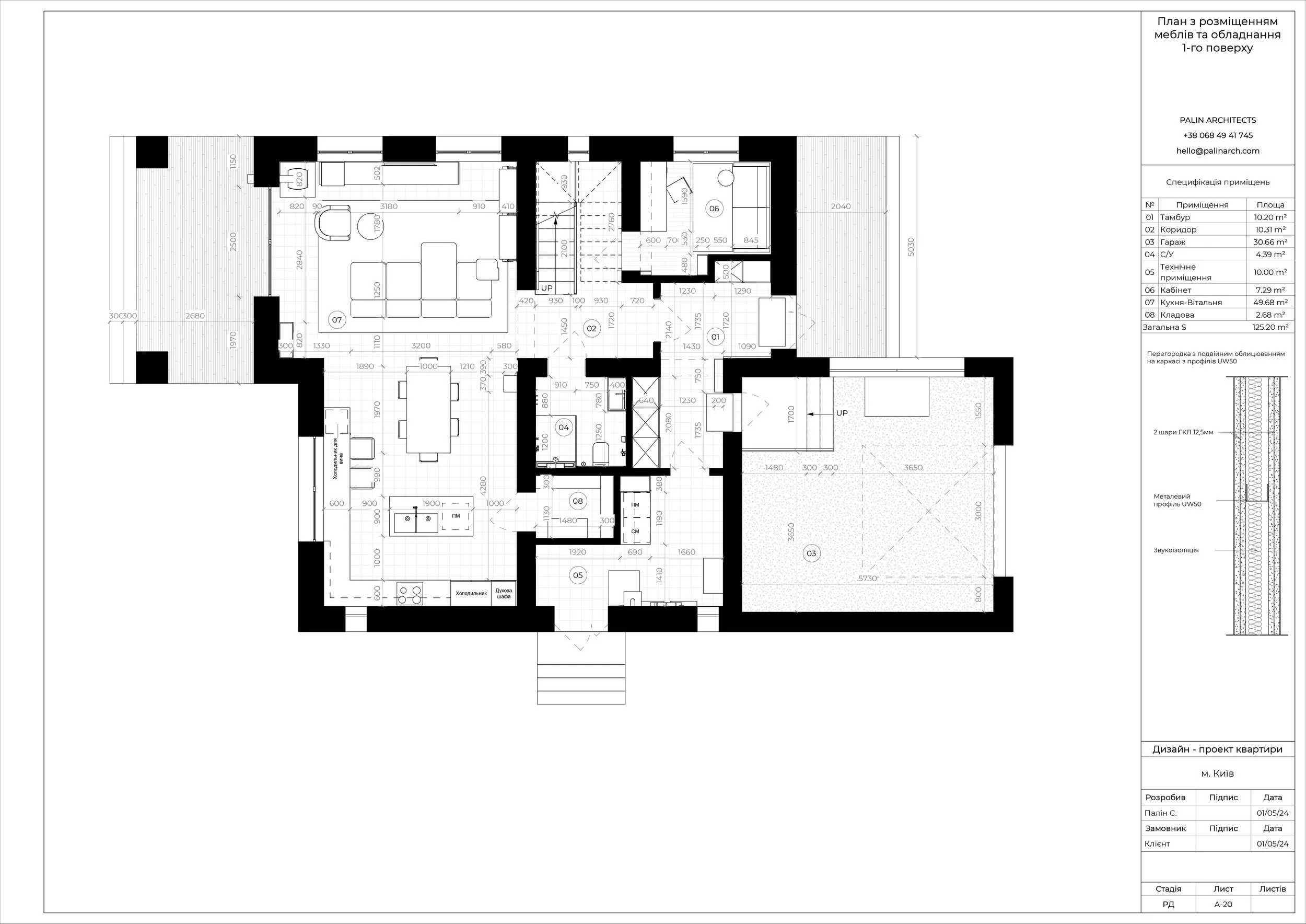 Пропрацьовуємо детальний план з рекомендаціями щодо розташування кожного елементу меблів для максимальної функціональності та естетики.